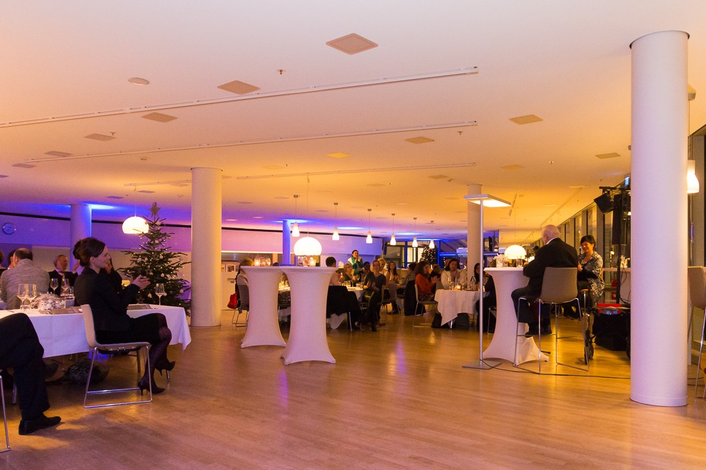 Dann begaben wir uns schleunigst ins Warme und konnten bereits die ersten Gäste der Firmenfeier in Hamburg begrüßen, die nun so nach und nach im Unilever – Haus eintrafen. Es gab, wie das bei Firmenfeiern so üblich ist, einen Sektempfang und von uns weihnachtliche Musik aus dem Swingbereich.